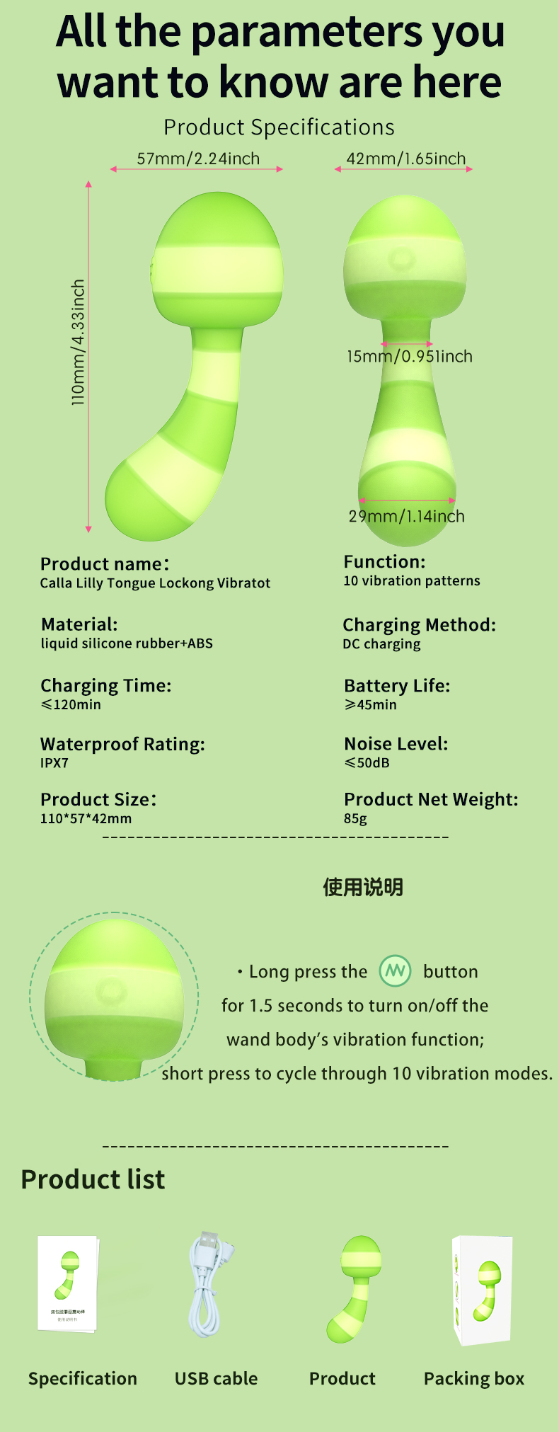 A sleek and powerful vibrator designed for body-safe pleasure. Multiple vibration modes for customizable sensations. Low noise operation. Waterproof design for worry-free use in any setting.