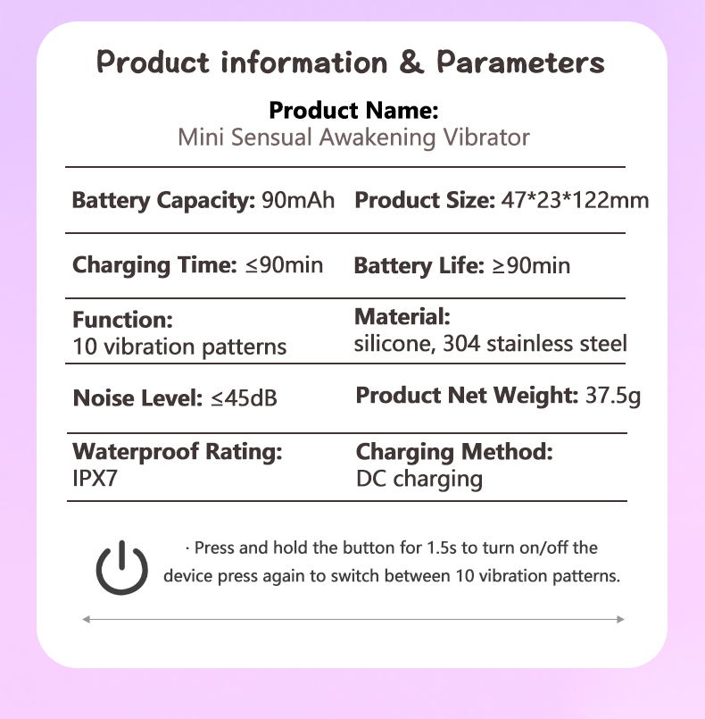 A sleek and powerful vibrator designed for body-safe pleasure. Multiple vibration modes for customizable sensations. Low noise operation. Waterproof design for worry-free use in any setting.