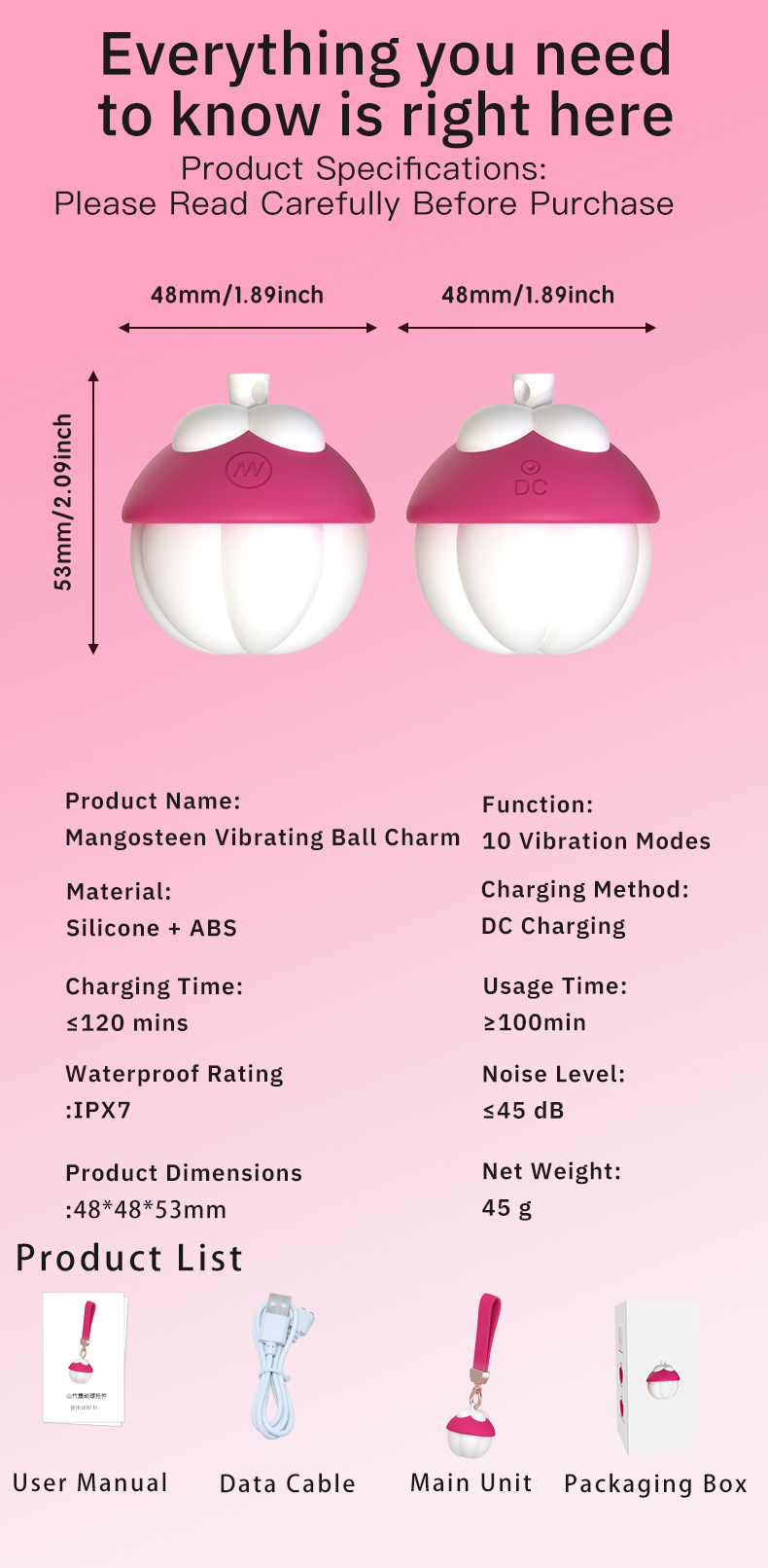 A sleek and powerful vibrator designed for body-safe pleasure. Multiple vibration modes for customizable sensations. Quiet design (<45dB). Fully waterproof (IPX7 rated) for worry-free use in any setting.